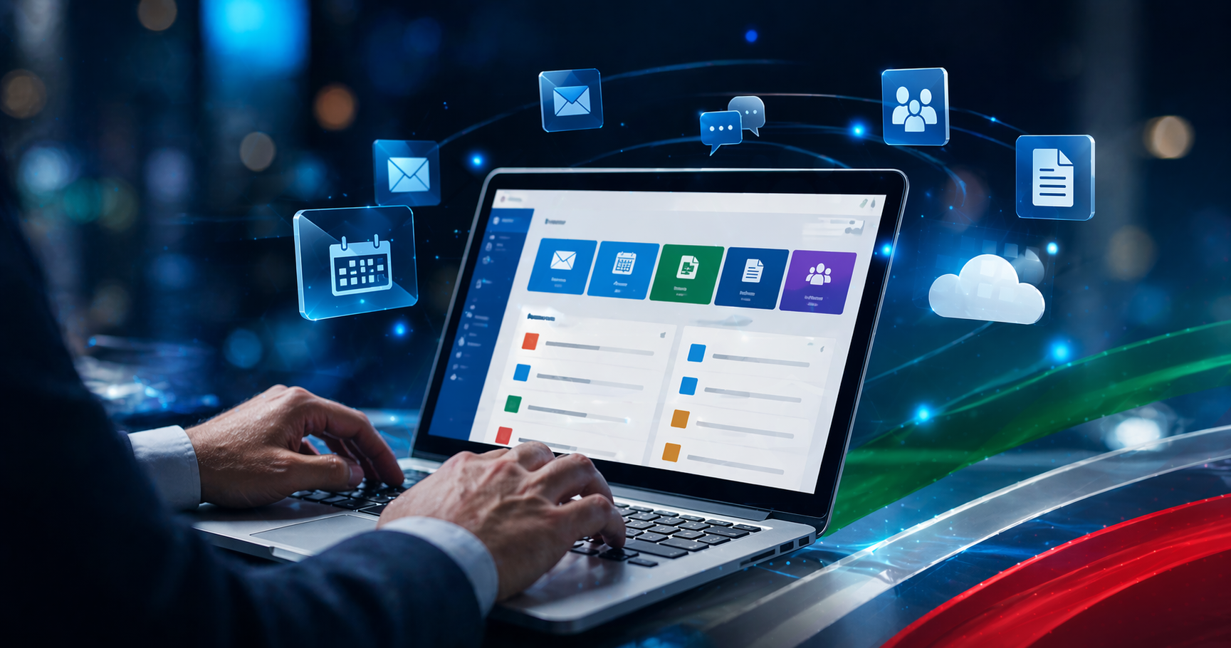 Microsoft 365 es la suite empresarial de productividad en la nube de Microsoft que combina aplicaciones de Office (Word, Excel, PowerPoint, Outlook), correo corporativo con Exchange Online, colaboración con Teams, almacenamiento con OneDrive, intranet con SharePoint y seguridad integrada, todo bajo una suscripción mensual por usuario.